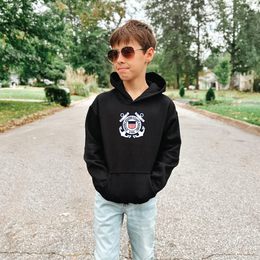 Let your little one show their Coast Guard pride in style in this Kids Seal Logo Hood