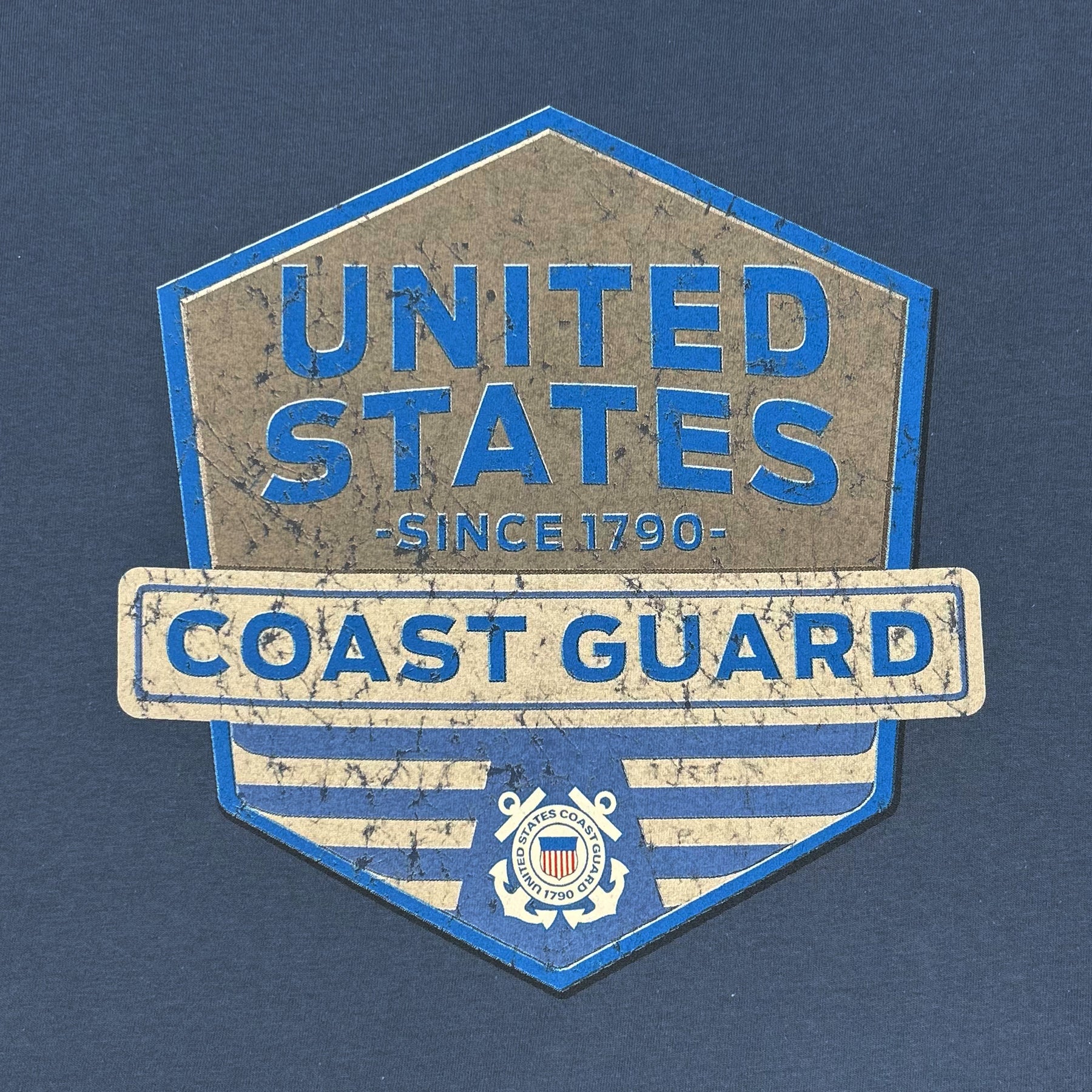 Show your Coast Guard pride with this vintage-inspired Coast Guard Distressed Hexagon Shield T-Shirt. Featuring a rugged, weathered design, this tee gives off a classic, time-worn look that embodies the strength and heritage of the U.S. Coast Guard. Crafted from soft, high-quality fabric, it ensures all-day comfort while offering a classic, vintage style!