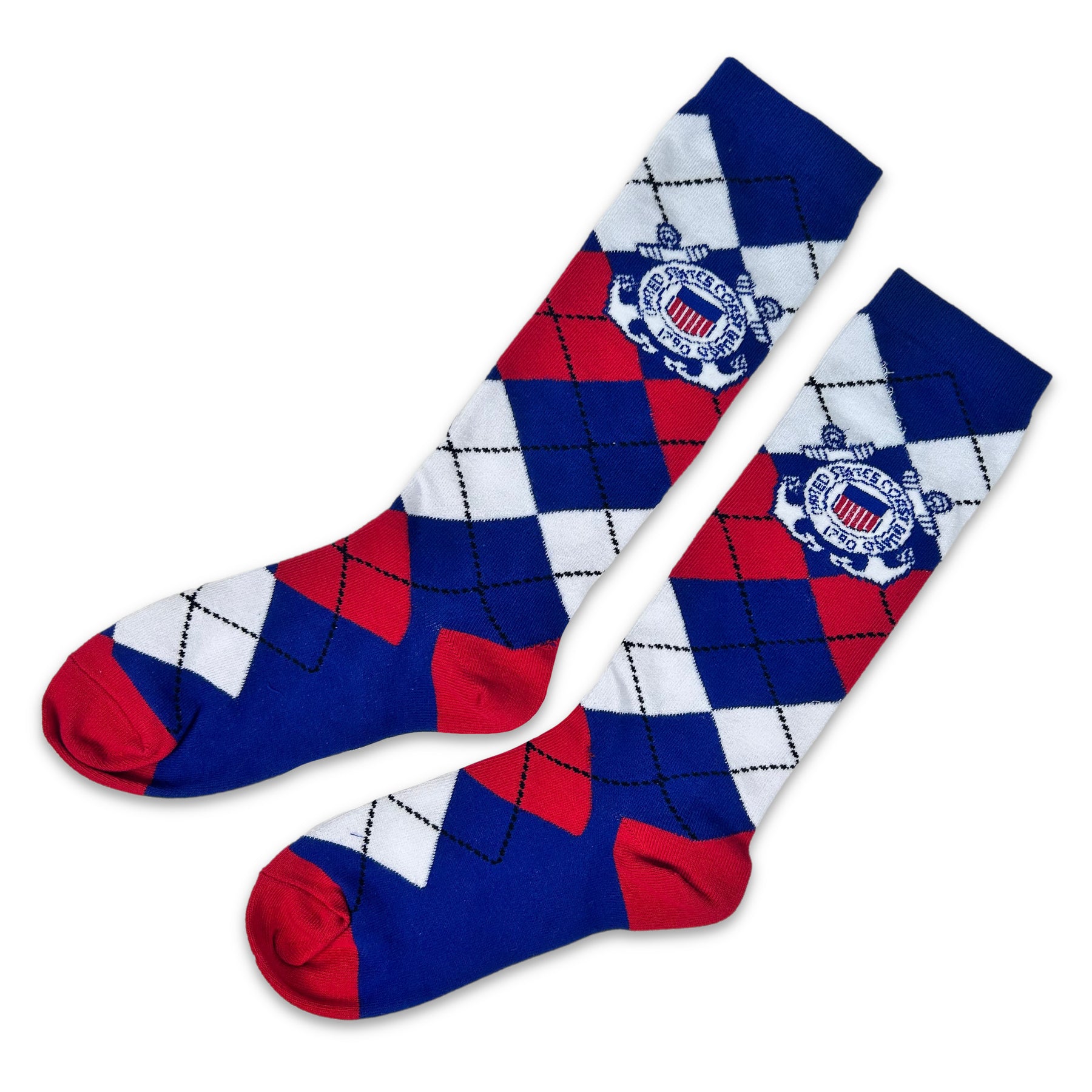 Stay stylish with the Coast Guard Seal Dress Argyle Socks. These classic argyle socks show off the iconic Coast Guard Seal with a comfortable material for all-day wear. Upgrade any outfit with these classic socks!