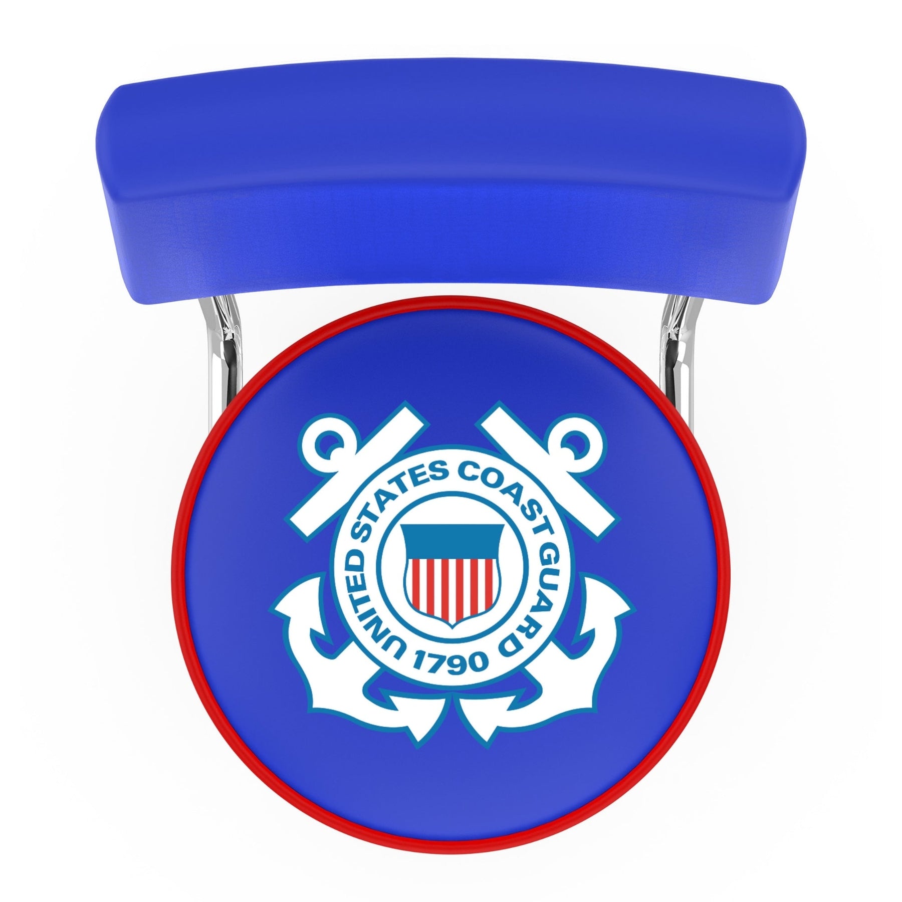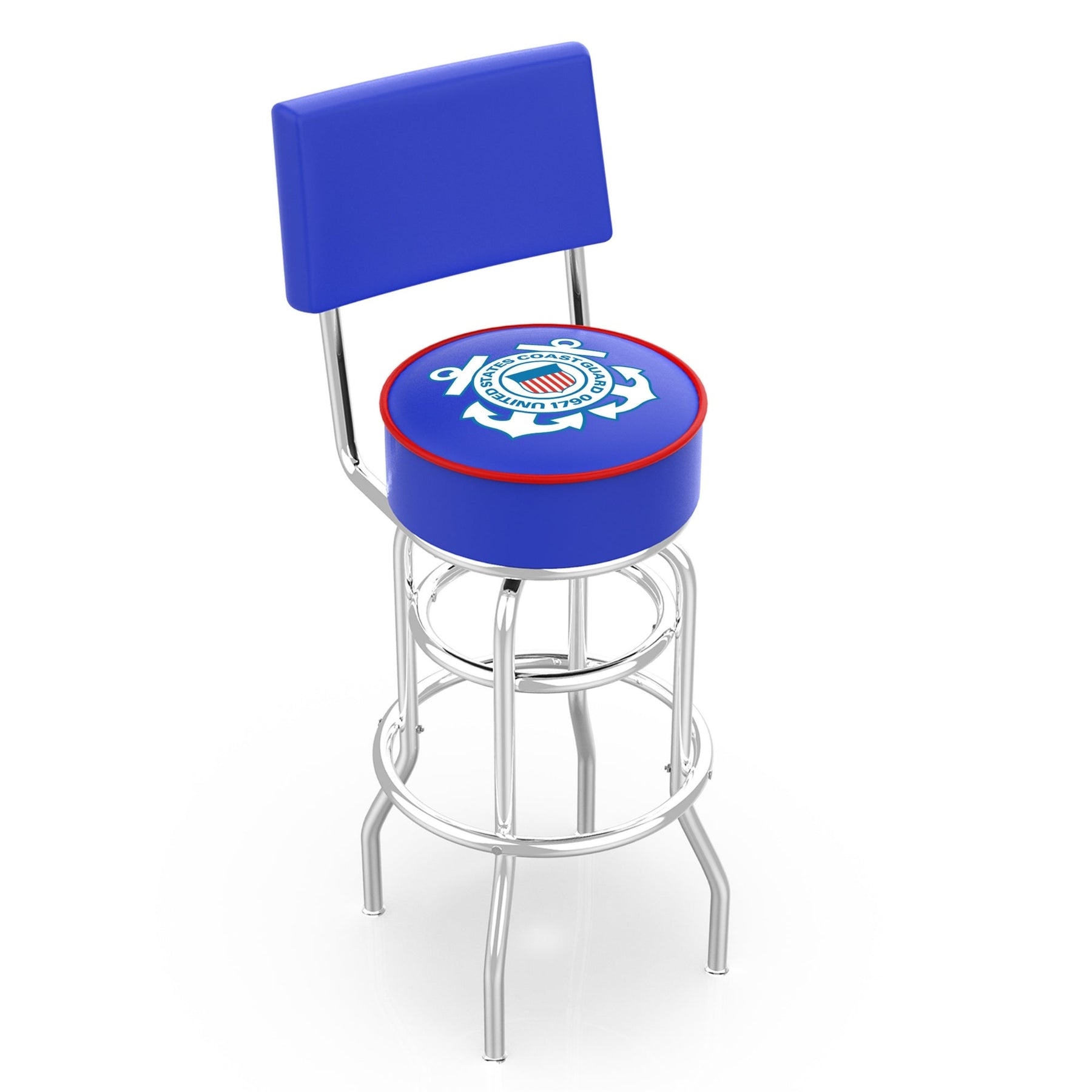 Give your space a patriotic touch with the Coast Guard Seal Stool with Back. Its specially formulated UV vinyl ink produces bright, sharp colors that stay vibrant, and its American craftsmanship guarantees lasting quality. Introduce American craftsmanship to any room with this Swivel Stool!