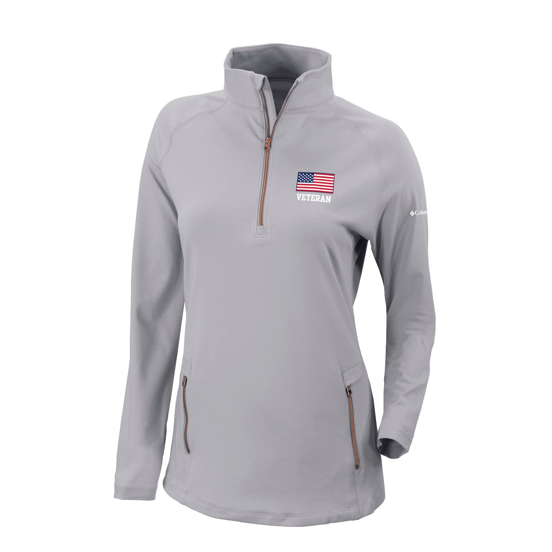 Stay comfortable and stylish with this Veteran Women's Columbia Outward Nine 1/4 Zip Pullover. Designed for durability and performance, it features moisture-wicking fabric and a versatile 1/4 zip for easy layering. Perfect for any outdoor adventure or showing off your Veteran pride in everyday wear.